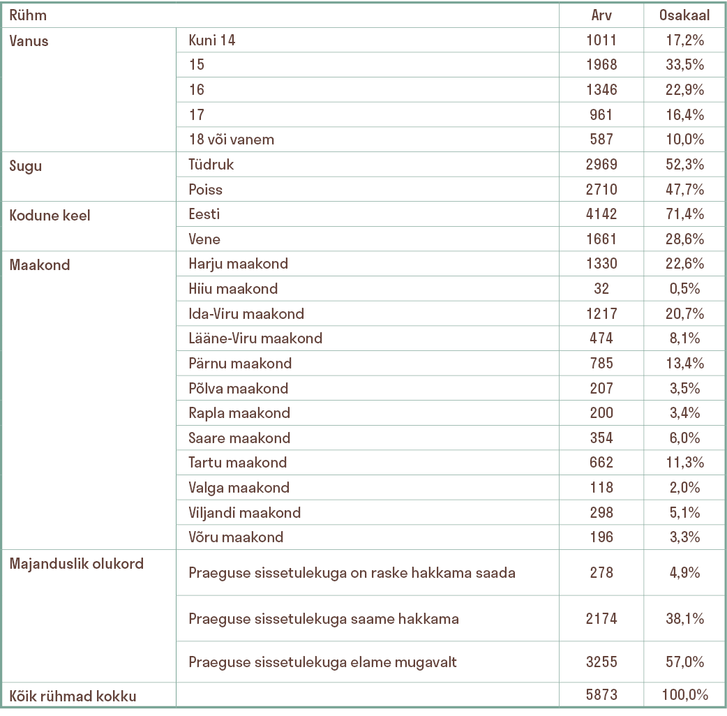 Tabel 7.2.2 ISRD4 valimi kirjeldus
